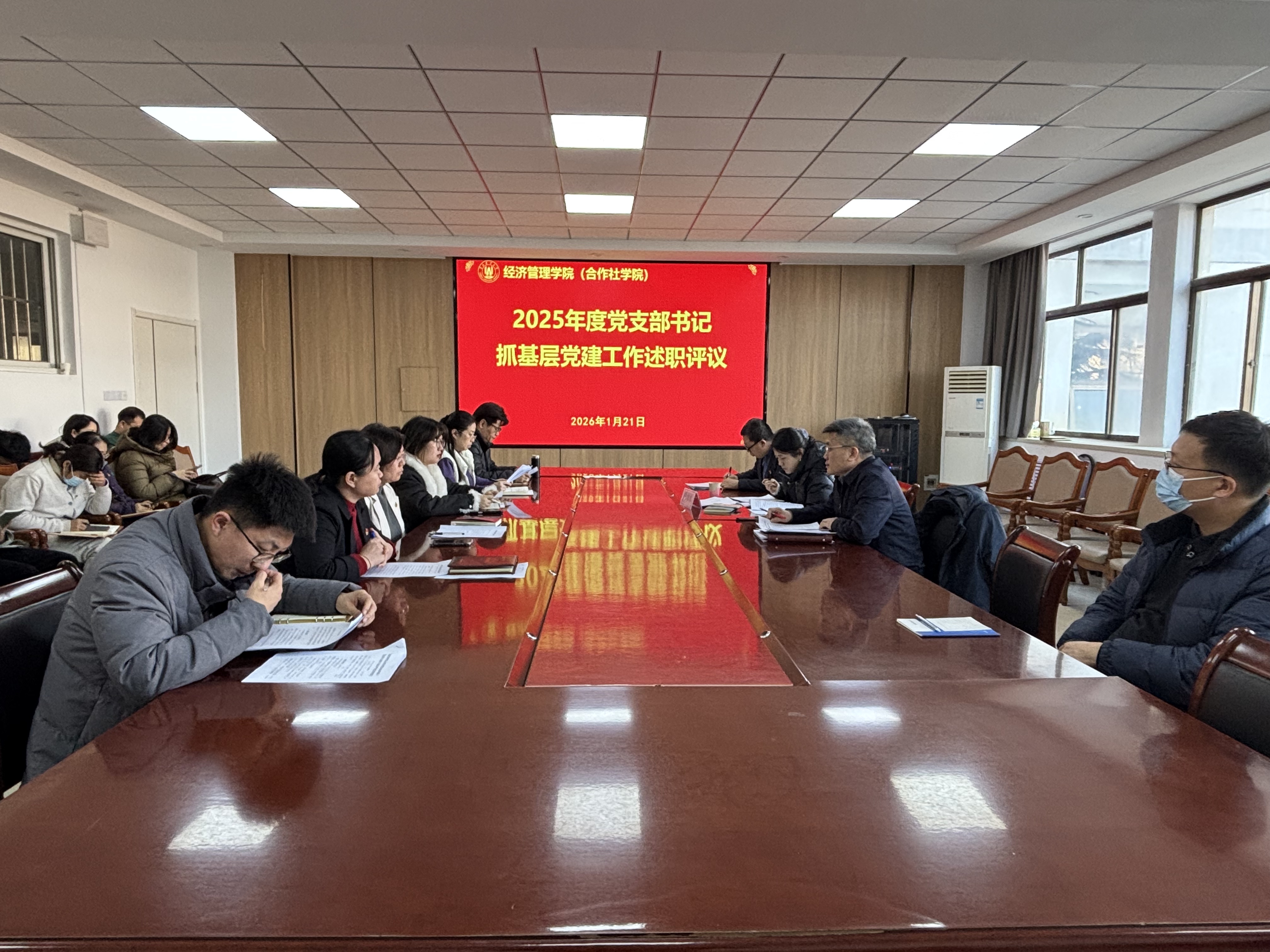 1月21日,经济管理学院(合作社学院)在文经楼A420会议室召开2025年度党支部书记抓基层党建暨履行全面从严治党主体责任述职会。农业传播与教育研究院(齐民书院)院长周维维到会指导,学院党委班子成员、各党支部书记参加会议。学院党委书记张德锋主持会议。