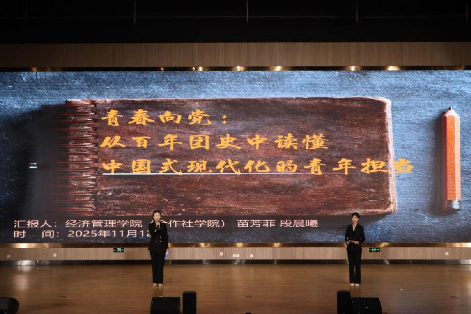开幕式上,经管学院会计2406班段晨曦、物流2401班苗芳菲围绕“从百年团史中读懂中国式现代化的青年担当》主题,食品学院粮食工程专业2301班张一帆围绕《食代担当——从餐桌到国策的青年使命》主题进行微团课展示,分享了实践案例,展现了青年学子的责任与担当。