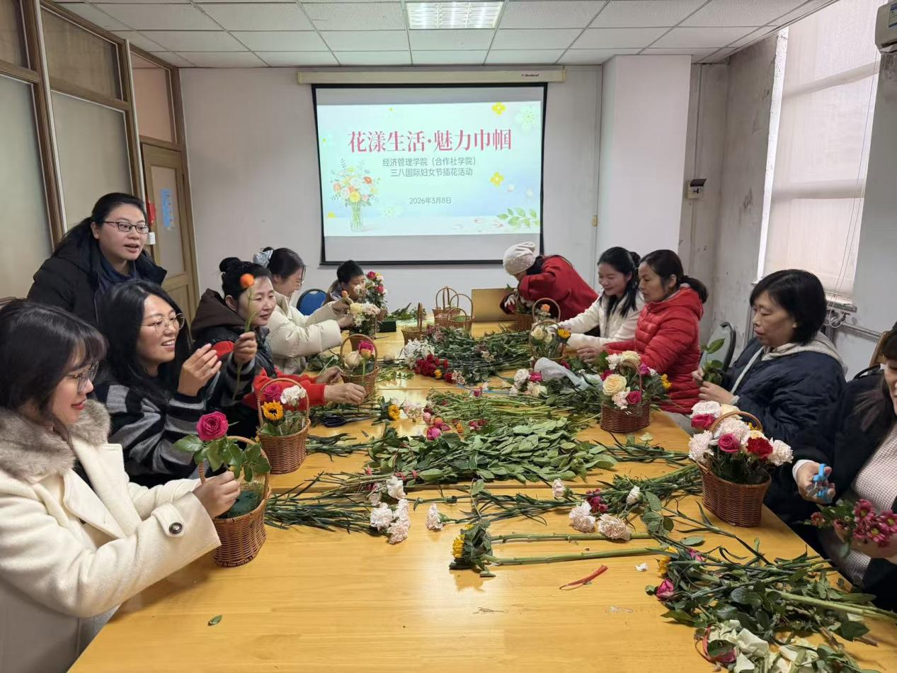 为热烈庆祝第116个“三八”国际劳动妇女节,进一步丰富女教职工的精神文化生活,传递组织关怀,3月8日,经济管理学院(合作社学院)精心组织开展了以“花漾生活·魅力巾帼”为主题的插花活动。学院女教职工欢聚一堂,以花为媒、以艺怡情,在温馨雅致的氛围中共同度过了一个别具意义的节日,充分展现了新时代女性教职工的优雅风采和积极向上的精神风貌。
