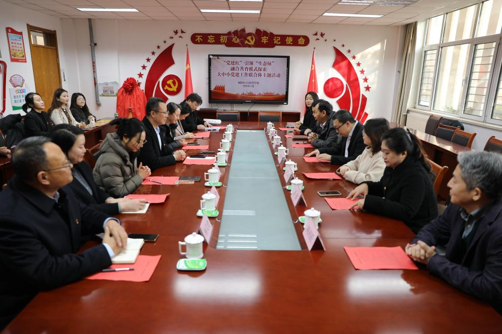 会上,韩同欣介绍了白沙湾学校在党建方面取得的成果并宣读了大中小党建工作联合体“领航雁阵”工程的基本内容与共建愿景。各方明确了以党史学习与生态教育有机结合为核心宗旨,通过跨学段资源共享与协同育人,构建“党建+生态”融合育人共同体,助力区域教育高质量发展。孙杰在会上表示,经管学院将依托学科特色与党建优势,推动生态文明理念深度融入大中小学思政教育体系,为探索新时代环境下做好“五育并举”实践新路径工作奠定坚实基础。