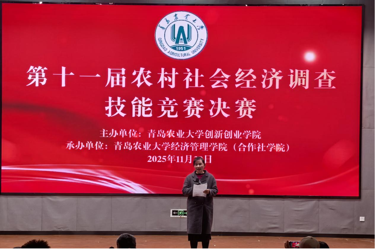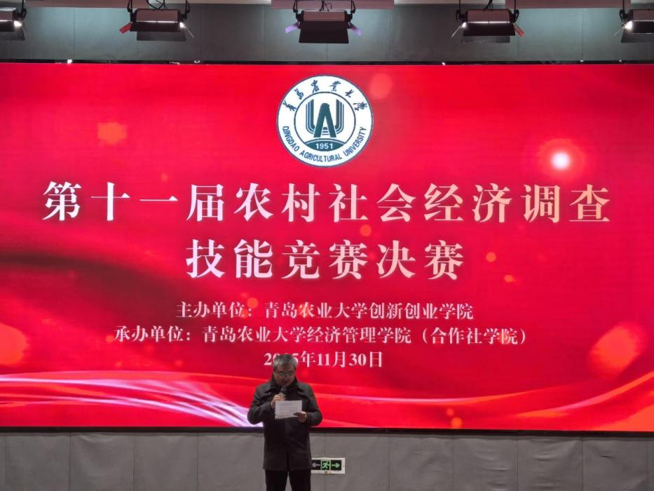 11月30日,经济管理学院(合作社学院)在平度校区博学楼报告厅举办青岛农业大学第十一届农村社会经济调查技能竞赛决赛暨创新创业宣讲动员会。本次比赛由青岛农业大学创新创业学院主办,经济管理学院(合作社学院)承办,学院党委副书记、副院长孙昭锋参加活动并担任评委,农林经济管理系专业老师和学院辅导员等6人共同担任比赛评委。农林经济管理专业2024级和2025级全体学生、青岛农业大学“三农学会”骨干和会员参加活动。
