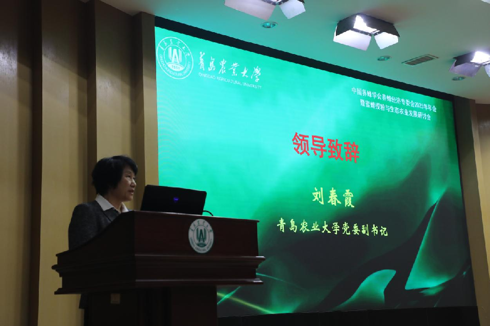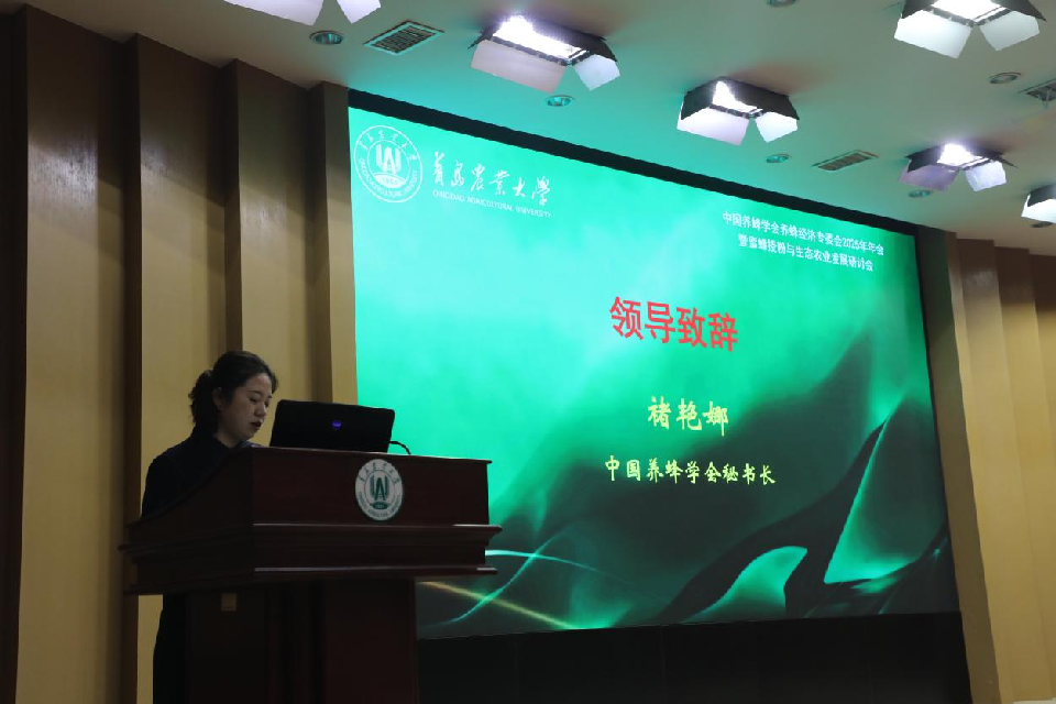 随后,中国养蜂学会秘书长褚艳娜向精心筹备会议的青岛农业大学领导师生和远道而来的各位专家学者致以衷心感谢。她指出,中国养蜂学会将继续深化科研创新与产业协同,联合各方力量推动蜂产业高质量发展,实现蜜蜂授粉与生态农业融合发展。