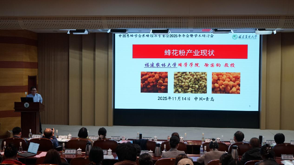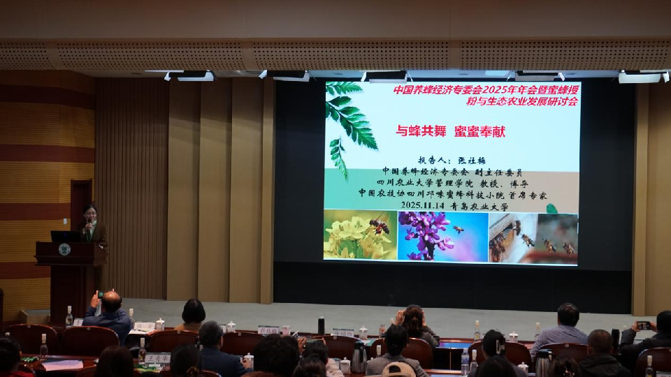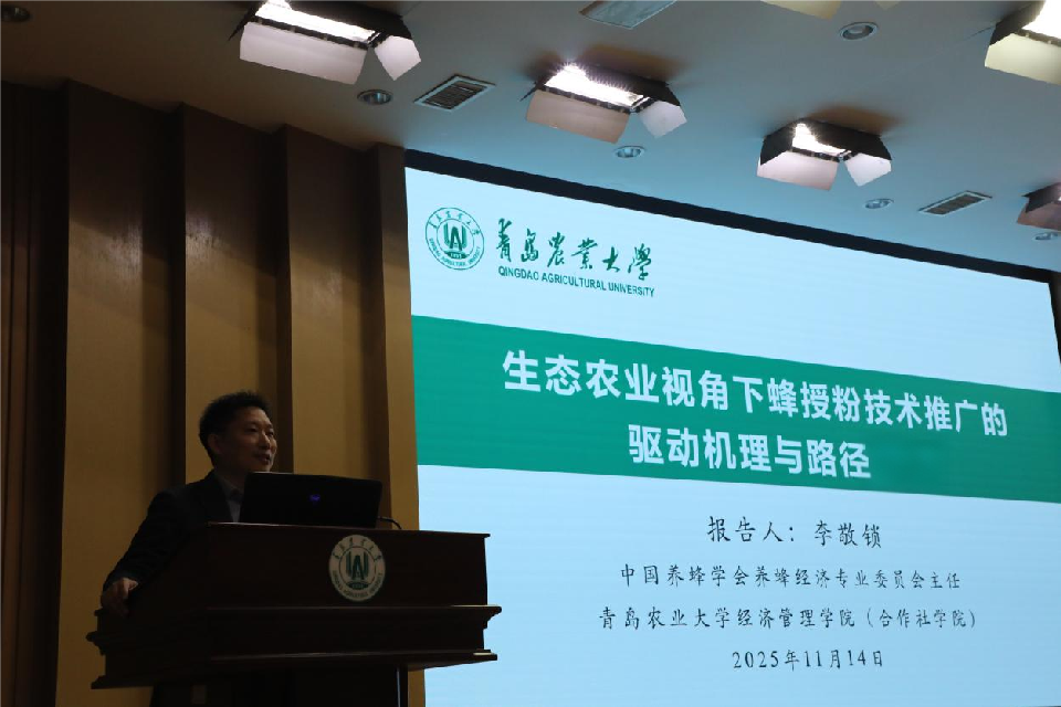 11月14日,由青岛农业大学经济管理学院(合作社学院)承办的中国养蜂学会养蜂经济专委会2025年年会暨蜜蜂授粉与生态农业发展研讨会在学校学术会馆第一报告厅举行。