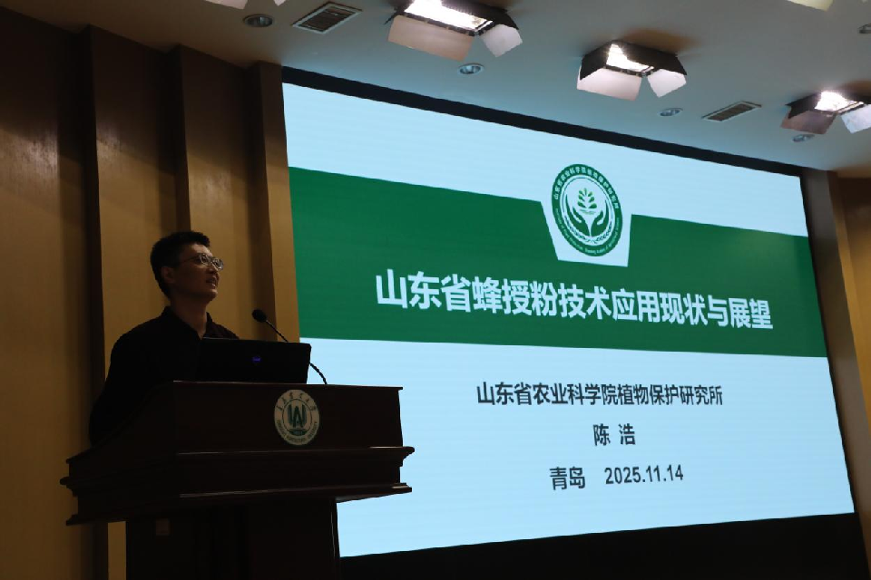 陈浩以“山东省蜂授粉技术应用现状与展望”为题,对蜂授粉在现代农业领域的生态及经济优势进行了分析,并通过与发达国家经验进行对比,对山东省蜂授粉技术的应用成效、面临的挑战以及应对策略展开了详细阐述。