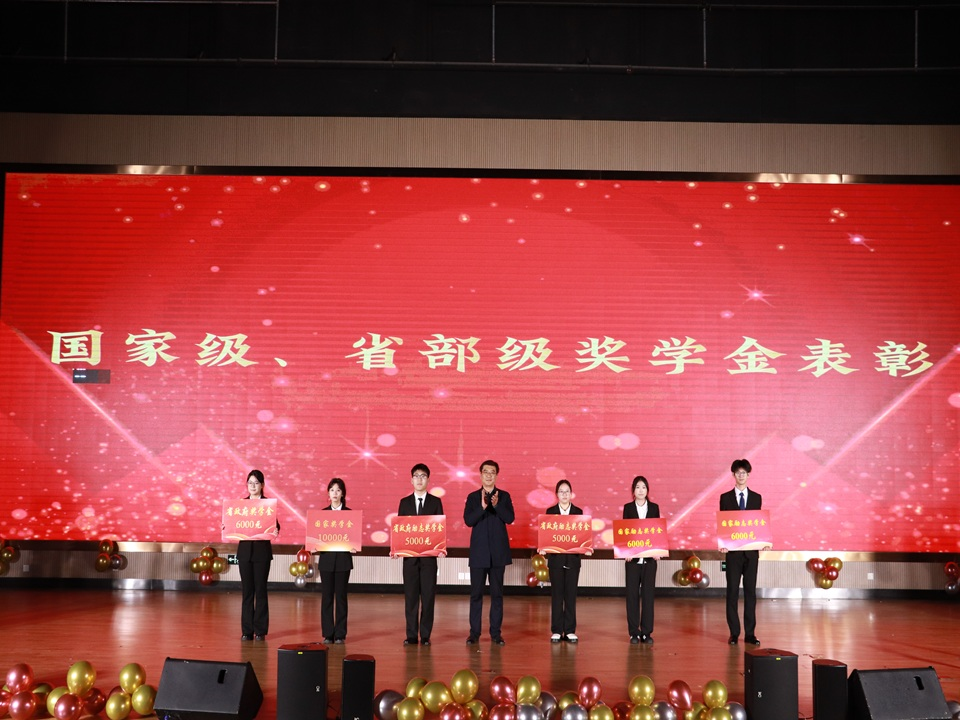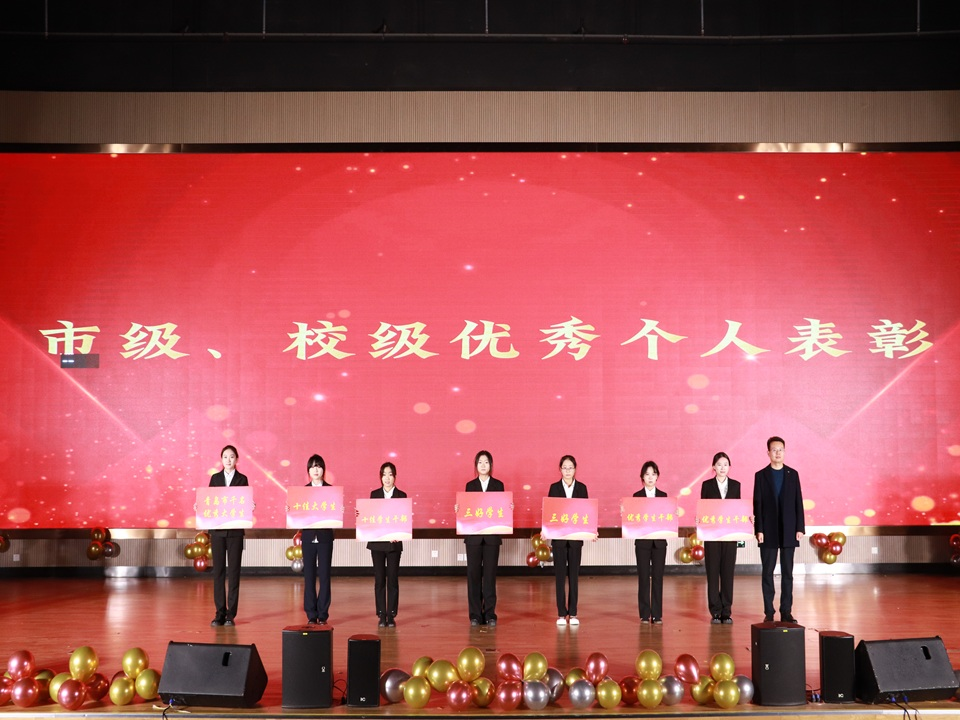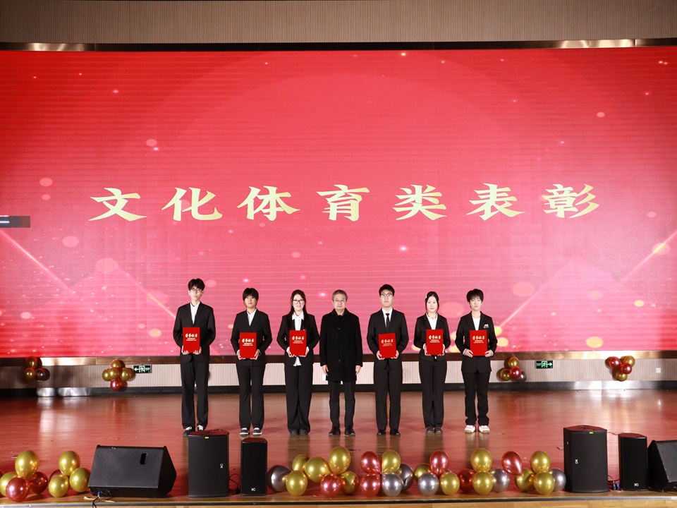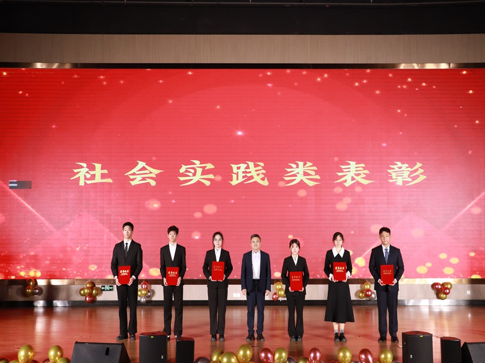 表彰典礼上,颁奖嘉宾向受表彰的集体和个人颁发荣誉证书,勉励同学们砥砺前行。